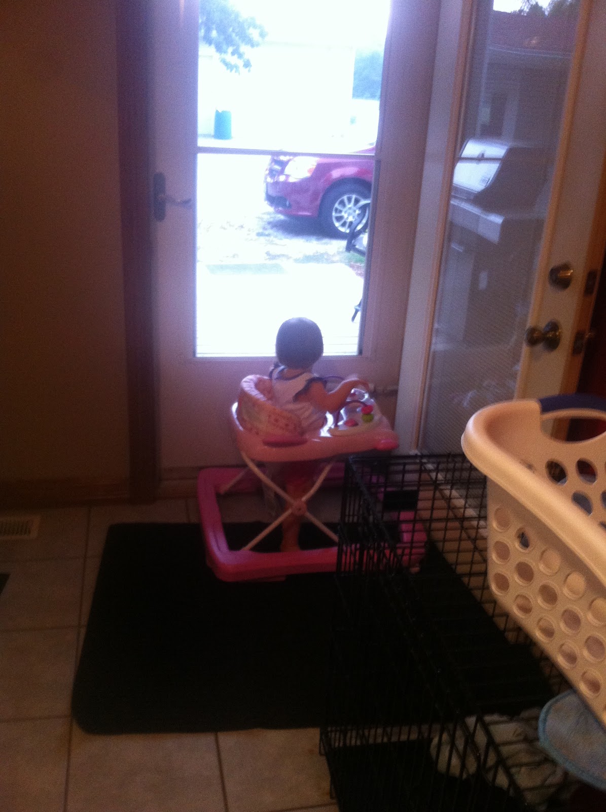 We have been busy planning for her party and getting everything ready. It just doesn't seem like she can be a year old already. She is learning new things all the time. She is such a little mimic too. She now lays her head on your shoulder and if you start patting her back, she pats yours. She has this ornery little laugh that just makes me smile. We have had to get baby gates because she will not stay where you put her. She doesn't crawl and she doesn't walk, she rolls everywhere. It is the funniest thing I have ever seen. I need to get a video of her doing it. If she gets stuck in a corner, she will push herself off whatever she can with her legs and keep going. She is NOT a fan of the gate and has sat there and cried at it. I cannot tell you how much I love this little girl and how much I believe that she was made just for Mike and I. She is a part of me I never knew was missing. She is one of the first things I see in the morning and the reason I can't wait to get home from work at night. I love Mike more know seeing how wonderful he is with her. Being a mother is more of a blessing than anyone can ever tell you.